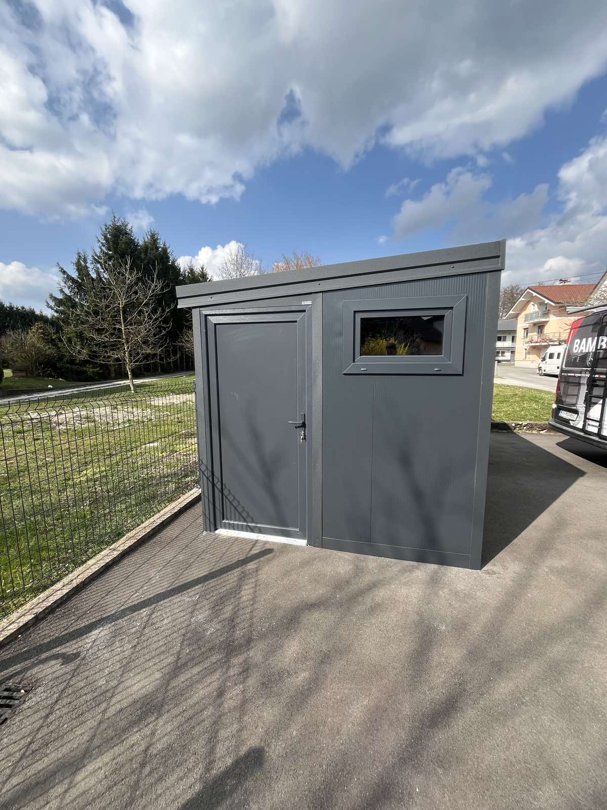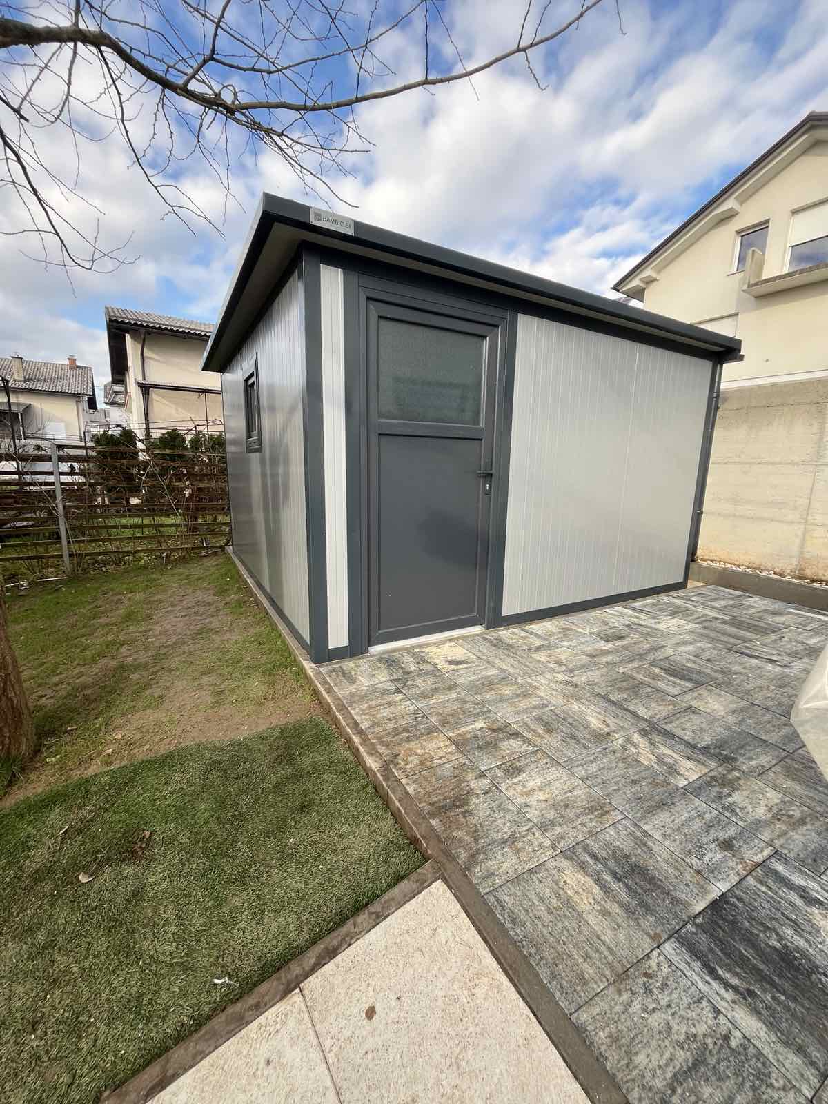 * za postavitev kovinske vrtne lope je potrebna ravna podlaga.
