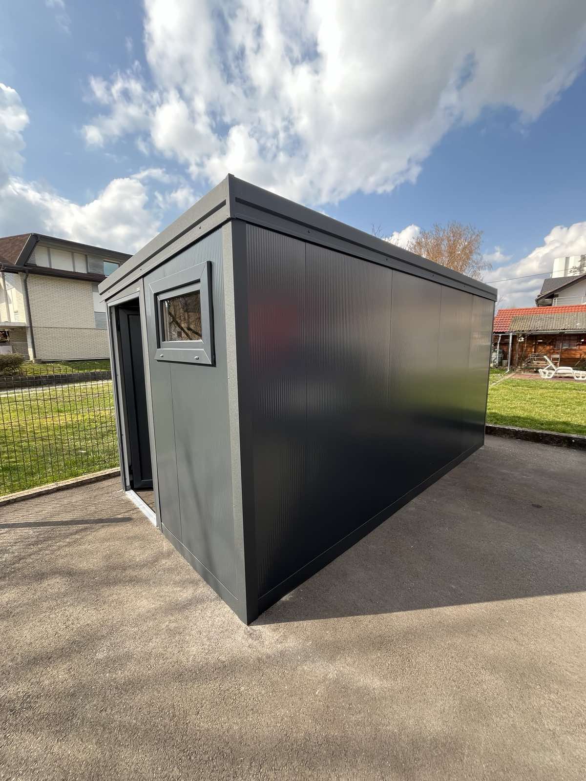 Premium kovinska vrtna lopa je idealna rešitev za vse, ki iščejo trajen, estetski in funkcionalen objekt, izdelan natančno po meri. Izdelana je iz visokokakovostnih, vremensko odpornih materialov, ki zagotavljajo dolgo življenjsko dobo in minimalno vzdrževanje.